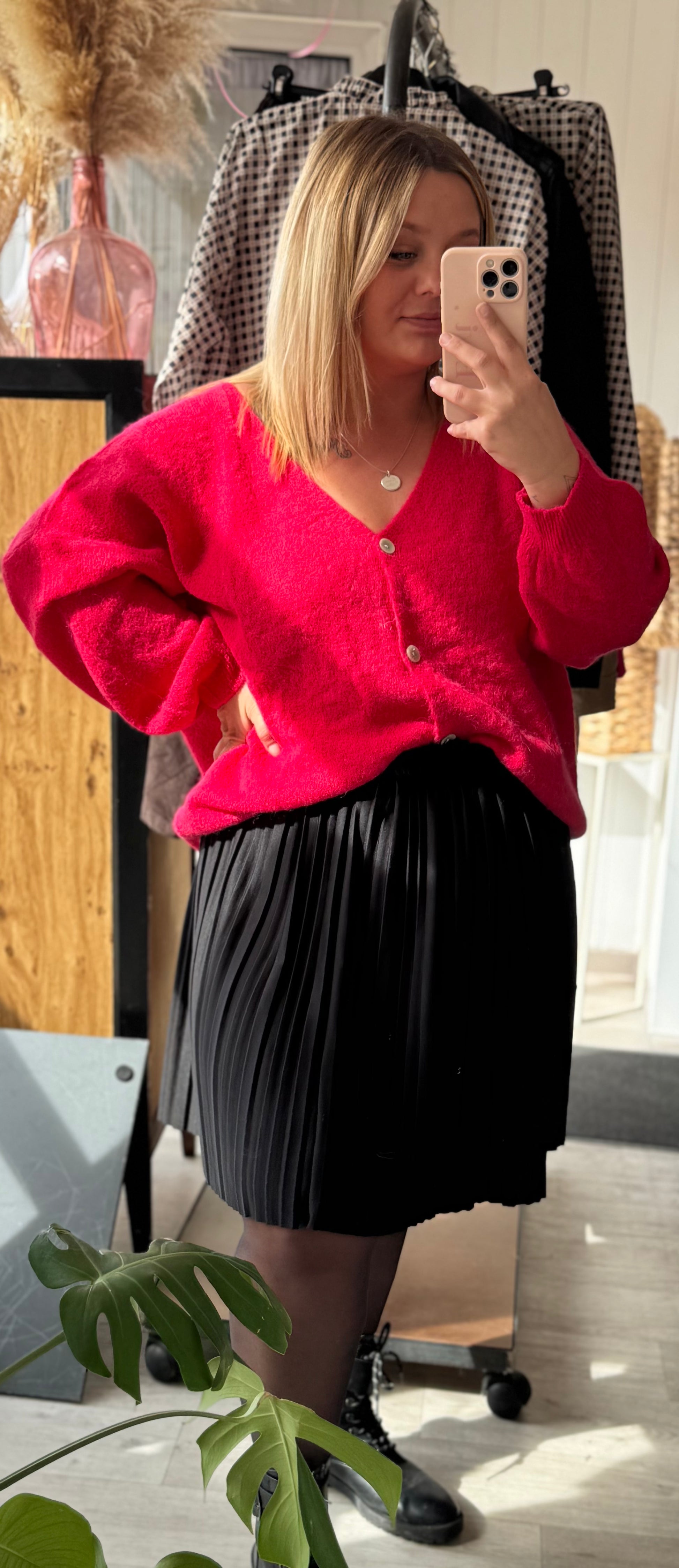 Disponible en noir ou en fuchsia ou rouge framboise, ce gilet se marie facilement avec un jean, une robe ou une jupe pour un look casual chic ou sophistiqué.