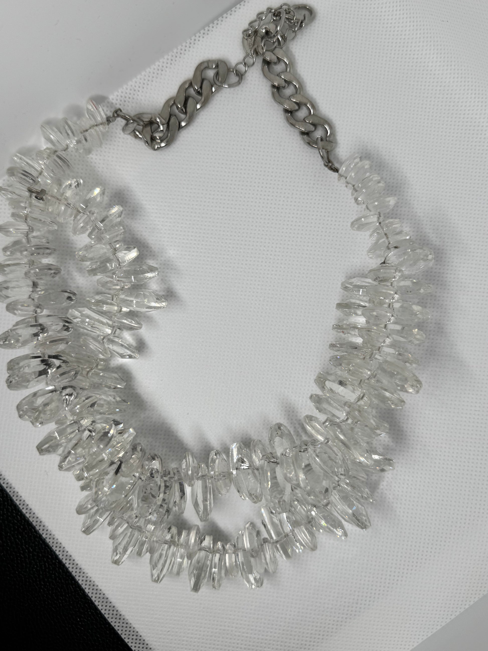 Gros collier en acier inoxydable argenté et transparent