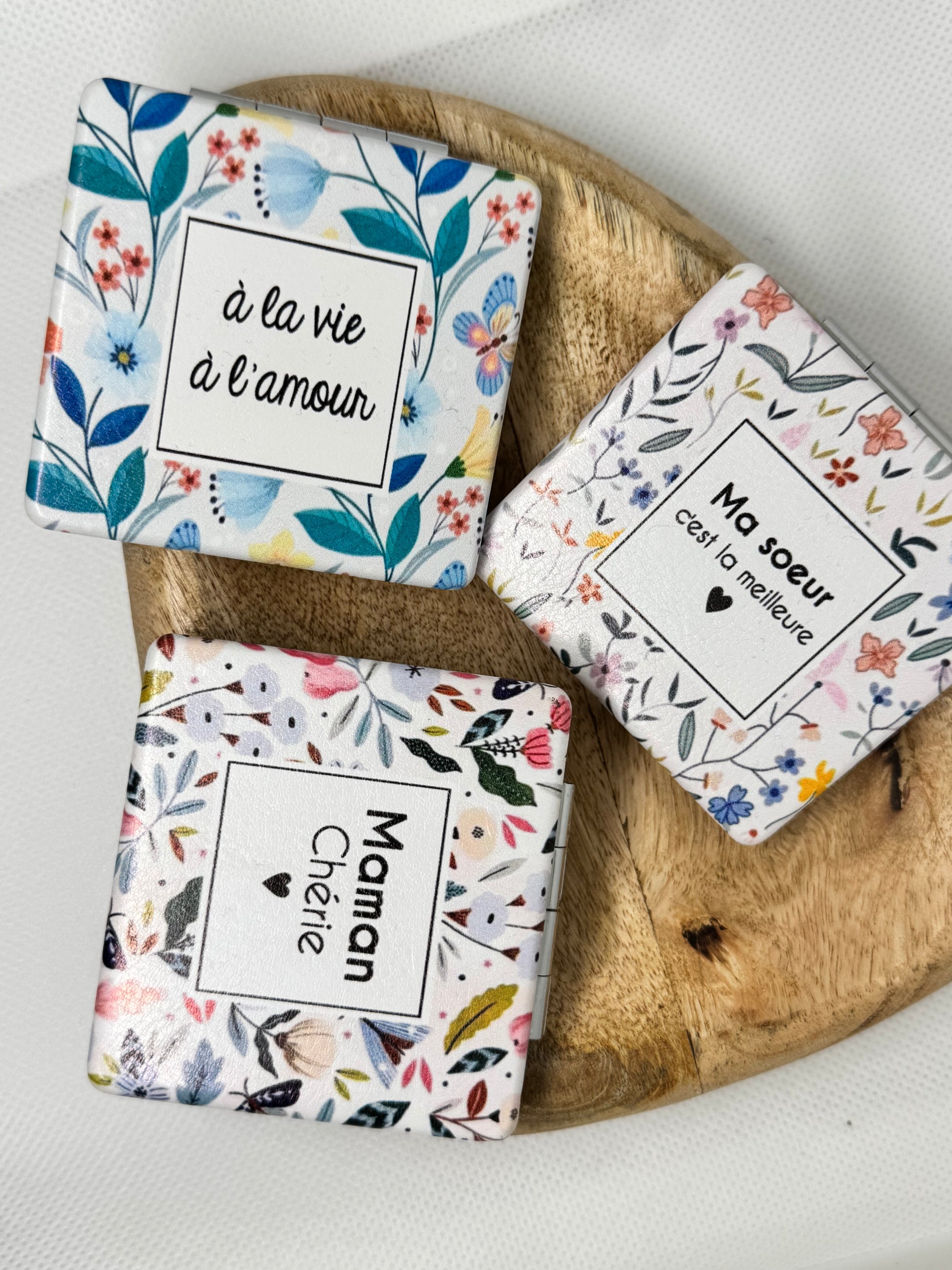 Miroir de poche – Format 6 x 6 cm (3 modèles)
