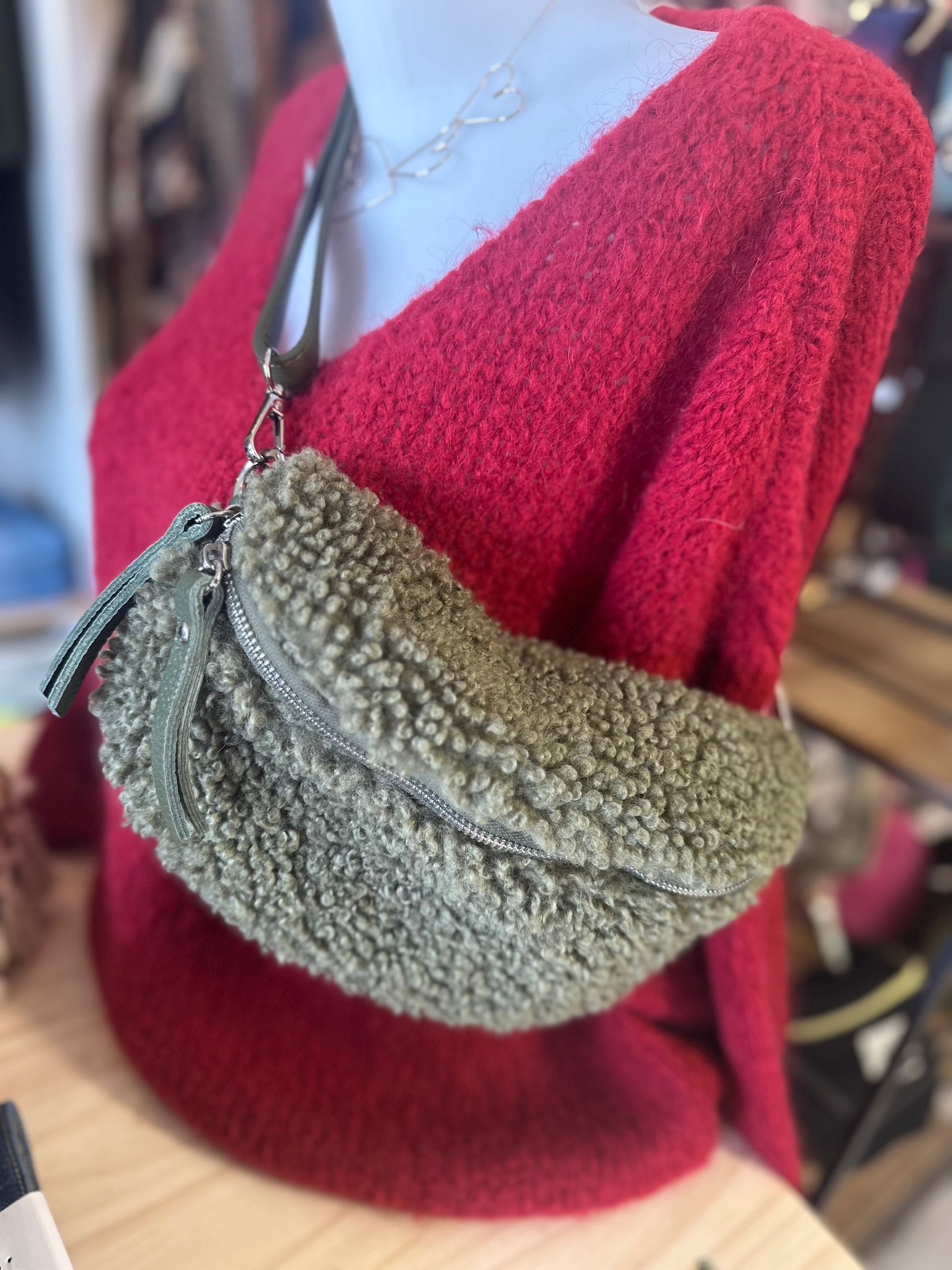 Craquez pour cette sacoche banane bouclette kaki. Pratique et tendance, elle se porte aussi bien à la taille qu’en bandoulière. Idéale pour garder vos essentiels à portée de main tout en ajoutant une touche fun et stylée à vos tenues !
