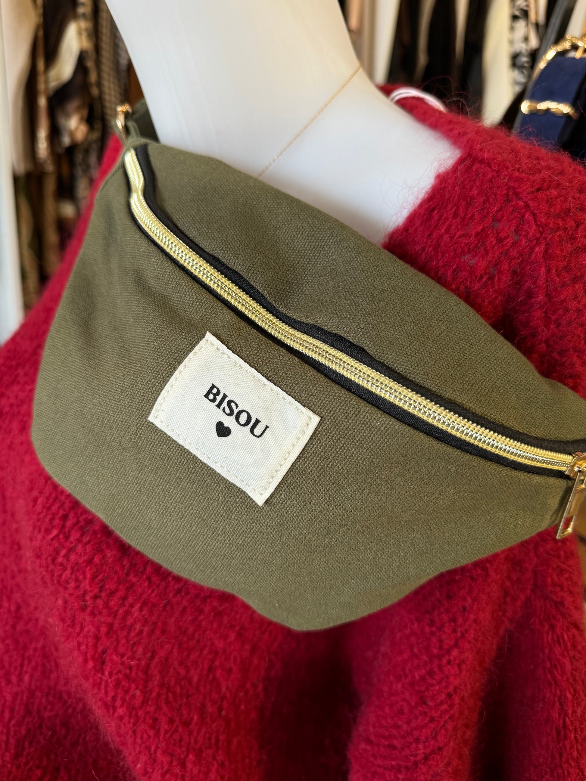 Craquez pour cette sacoche banane noire ou kaki à l’inscription "Bisou". Pratique et tendance, elle se porte aussi bien à la taille qu’en bandoulière. Idéale pour garder vos essentiels à portée de main tout en ajoutant une touche fun et stylée à vos tenues !